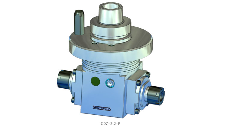 G07-2.2-P 系列的角銑刀頭為您提供制造角銑刀頭的選項,其主軸位置固定,從 10° 向上到 10° 向下。角位置不能隨后改變。