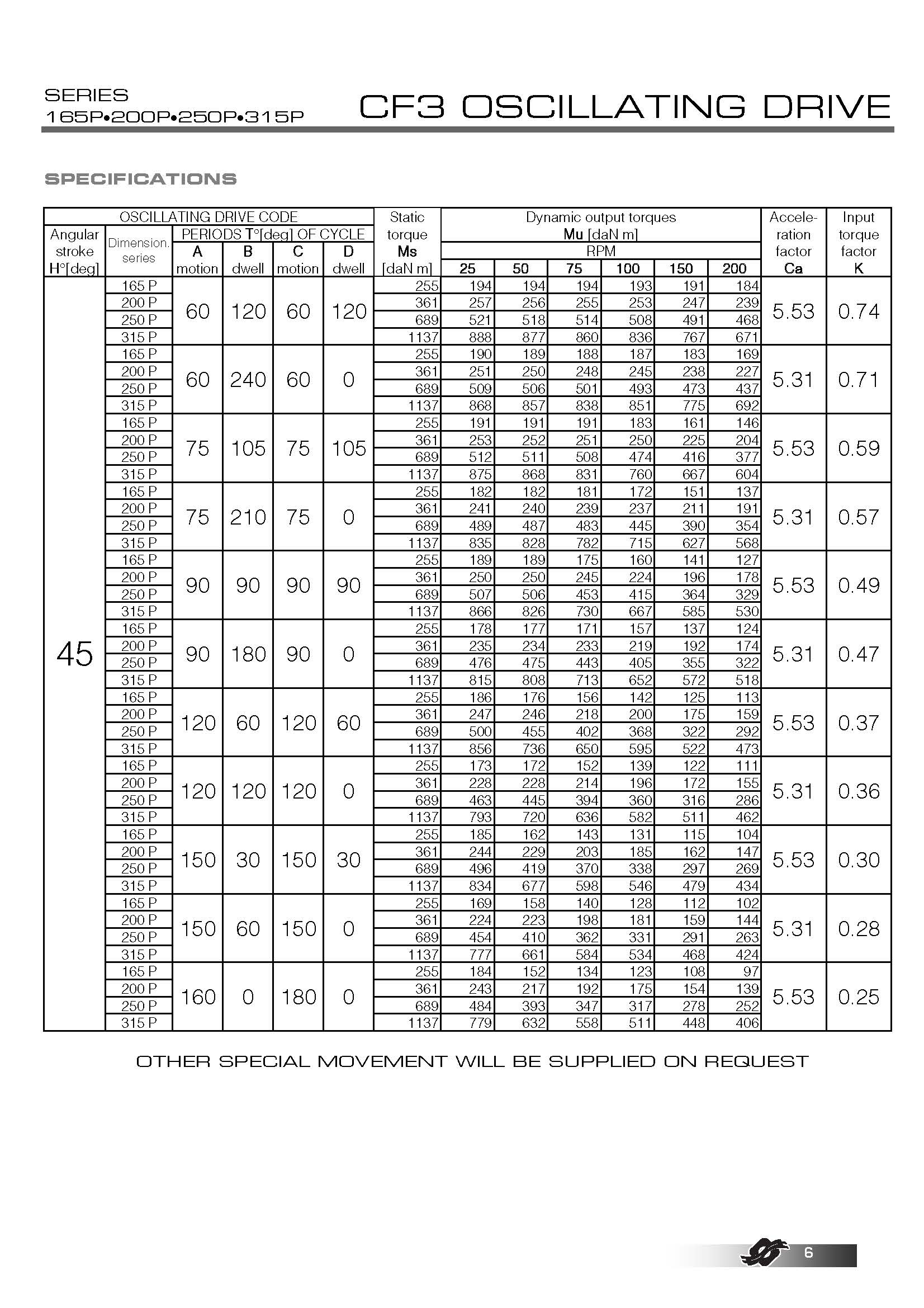 尺寸 400P、500P 和 650P 不在目錄中,因?yàn)樗鼈兪菫樘厥庖蠖谱鞯摹?/span> 與 COLOMBO FILIPPETTI spa 的其他產(chǎn)品一樣,該機(jī)構(gòu)可以根據(jù)需要制造成具有不同的運(yùn)動(dòng)規(guī)律和特殊周期。 |